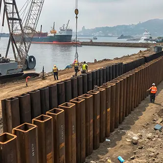 Hot rolled steel sheet piles are commonly used in infrastructure and marine engineering projects such as port construction, bridge foundations, deep excavation support, riverbank protection, and retaining wall systems.